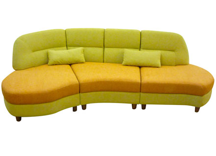 Стоимость дивана от 68 000 руб. Модель интересно смотрится со всех сторон, особенно выразительна изогнутая спинка дивана, что позволяет ставить его в центре холла как доминанту интерьера, зонируя пространство. Диван модульный, изготовлен на заказ.